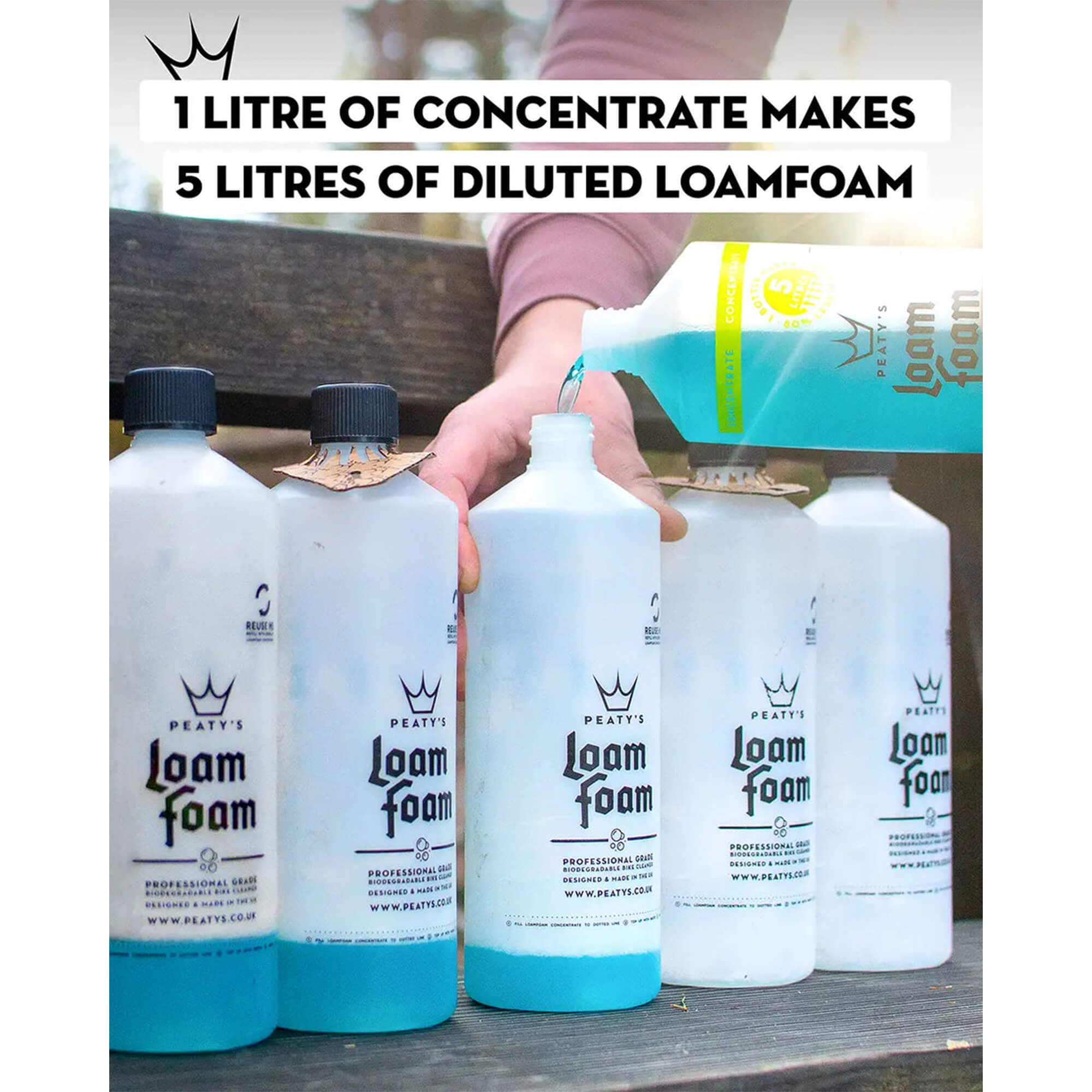 Peaty's LoamFoam Concentrate - Biodegradable Bike Cleaner delivers the same trusted cleaning performance in a more efficient and environmentally conscious format. Designed for riders who clean regularly, this concentrate allows you to mix your own solution while reducing waste and cost.