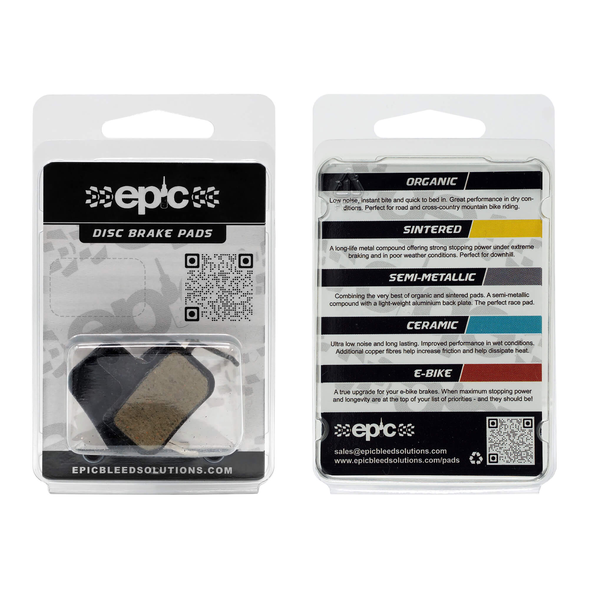 • Versatility: With 4 different pad compounds to choose from you can select the brake pads that match your style of riding, giving you the flexibility to tailor your braking system to your specific needs and conditions.